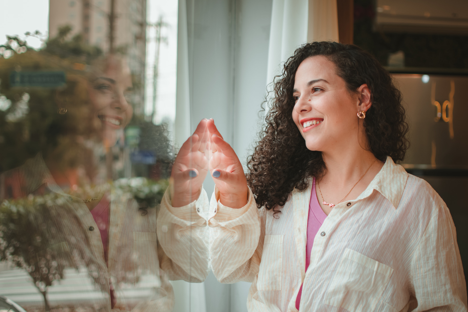 Não realizamos fotos em estúdio tradicional. Nossos ensaios acontecem em uma casa estúdio, que oferece um ambiente acolhedor e autêntico, sem o uso de fundo infinito branco ou sessões diretamente na sua empresa. Dessa forma, garantimos imagens mais naturais e cheias de personalidade.