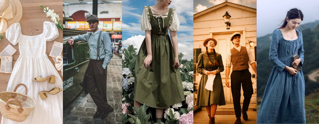 Aqui, o ensaio acontece ao ar livre, com figurinos bucólicos e direção leve.