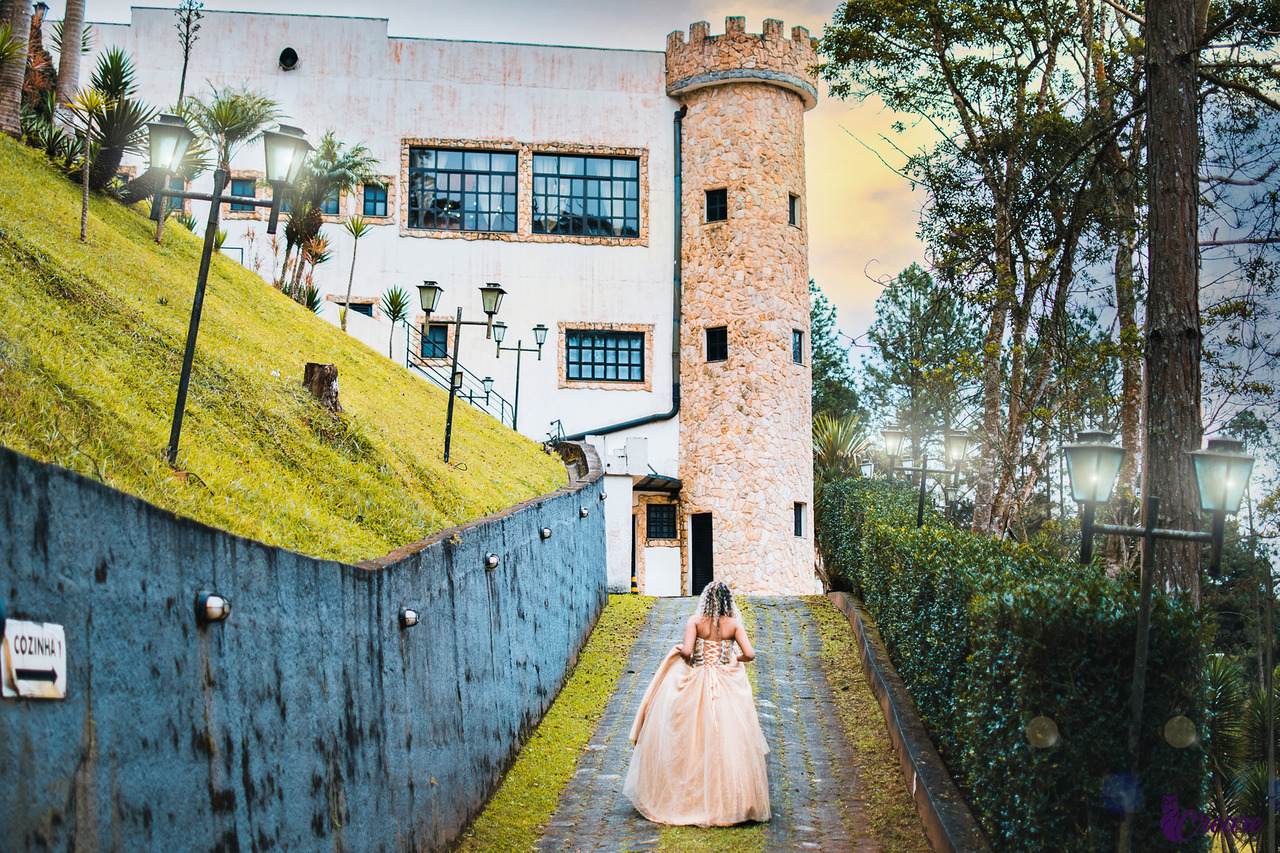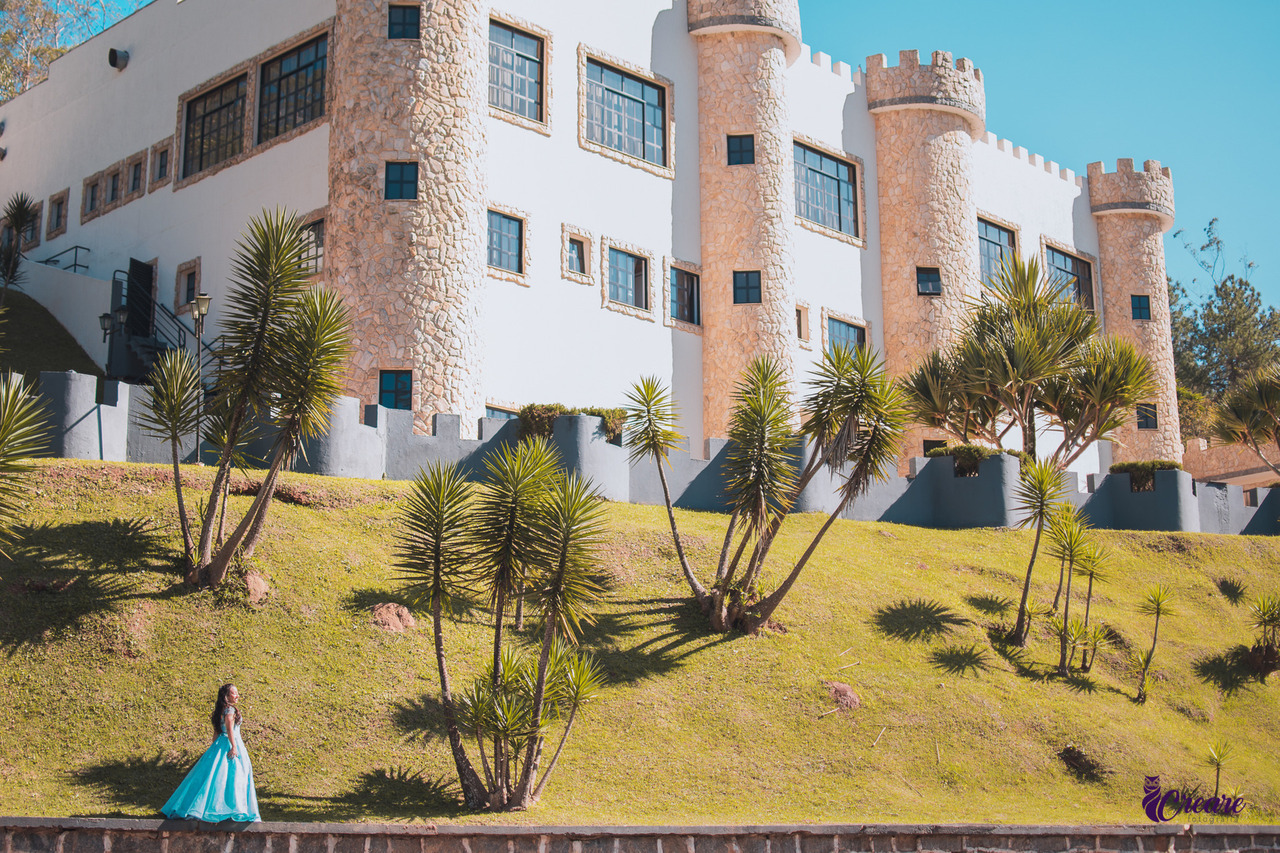O local é digno de uma princesa, é um castelo lindo, com vários ambientes. A melhor parte é que você não precisa fazer um ensaio que pareça de princesa; você pode curtir a paisagem de forma mais natural, mas ainda assim mostrar todo o charme da arquitetura medieval.